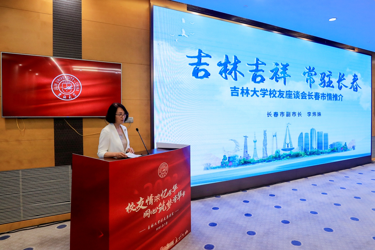 李炜姝分别从汽车产业、高端装备产业、光电信息产业、生物医药产业、农产品加业、能源产业、文旅产业等方面详细介绍了长春市的发展现状和建设蓝图。她表示,今天的长春开放包容、蓬勃发展。她代表长春市政府,向全球的吉大校友发出诚挚邀约,愿天下吉大校友常回家看看,愿长春成为大家再出发、再创辉煌的吉祥之地,长春将以最优的环境、最好的政策、最高的礼遇营造顺心的创业氛围,恳请各位吉大校友发挥自身的信息渠道和人脉资源优势,带动更多企业家朋友了解长春、选择长春、投资长春,为长春市未来的发展注入新活力、创造新辉煌。