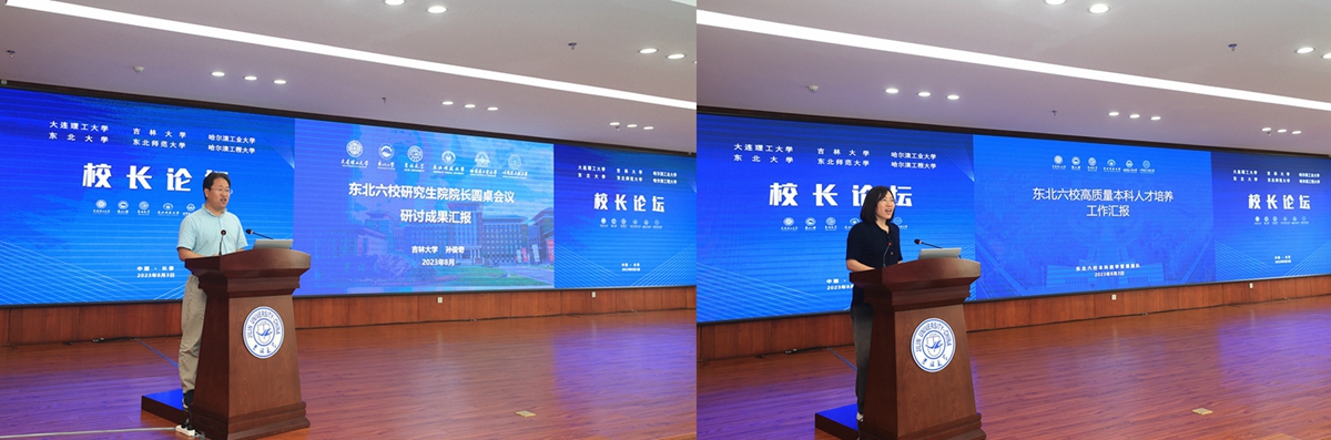 研究生院院长孙俊奇、大连理工大学教务处副处长夏远景分别代表东北六校研究生院院长和教务处处长(本科生院院长)在校长论坛汇报有关情况,并就协同推进高质量人才培养工作提出建议。