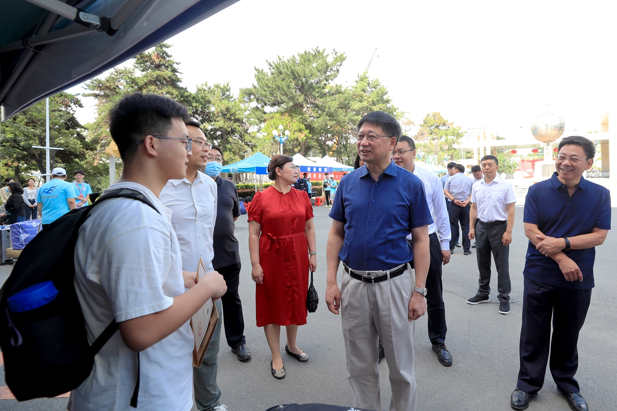 在中心校区迎新现场,张希向辛勤付出的工作人员和学生志愿者致以慰问,并与各学院负责人、辅导员进行交流,叮嘱大家要将对新生的关怀落实到各个细节。在了解到商学与管理学院的一位河南籍新生家里遭受洪涝灾害的情况后,张希勉励她“困难只是暂时的,在这里安心读书,学校会是你坚实的后盾”,并叮嘱学院一定要做好入学帮扶工作,切实解决学生困难。在港澳台办公室报到点,张希向正在报到的一位来自台北的新生表示欢迎,并鼓励她科学规划大学学业,快速适应大学生活。张希逐一了解各学院迎新工作安排和本科生报到情况,他指出,大学教育与高中教育的有效衔接是大学教育至关重要的一环,教师要通过改善教学方法和考核方式帮助学生完成从高中到大学的顺利过渡,从而增强学生的自信心;辅导员要充分践行思政育人使命,让新生了解吉大先贤们的故事,传承先辈精神,引导学生明确人生目标,树立正确的价值观,努力培养青年成长为堪当民族复兴重任的时代新人。