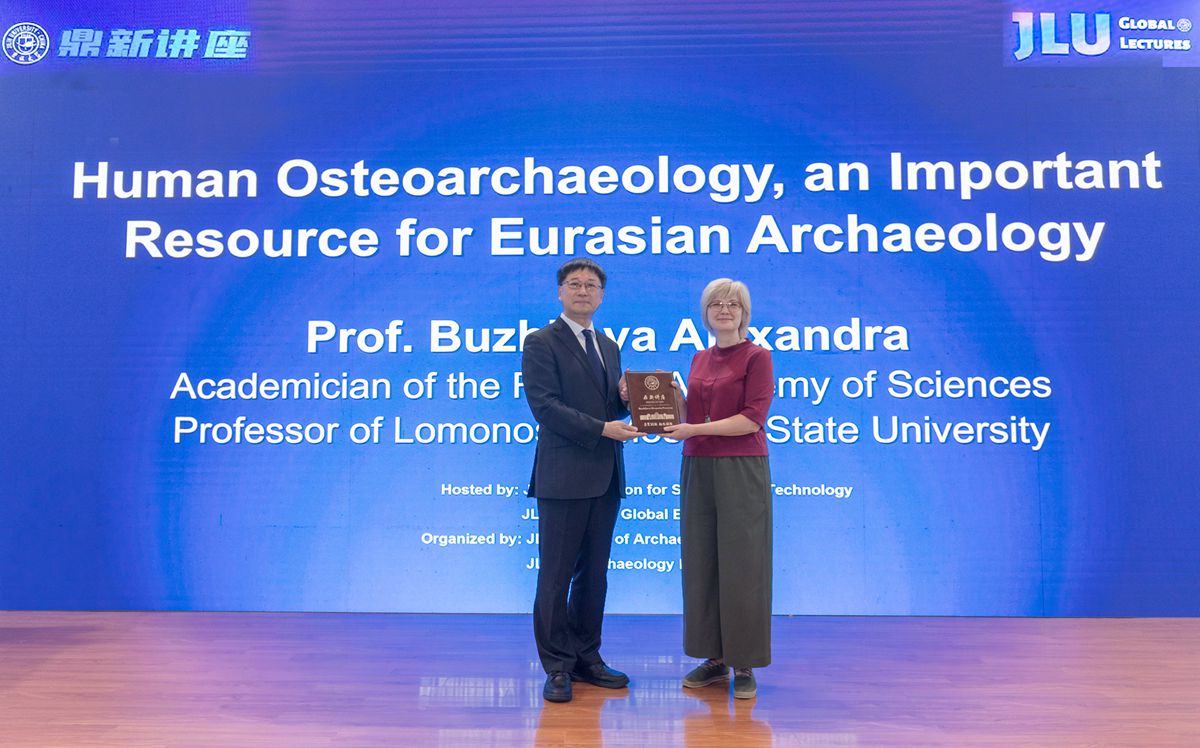 大师,作题为“人类骨骼考古学—欧亚考古的重要资源”的鼎新讲座。张希出席讲座并为布日洛娃院士颁发鼎新讲座纪念牌。