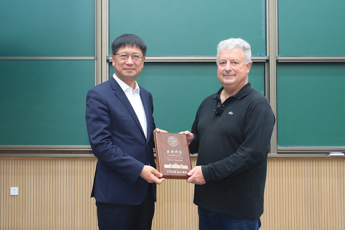 校长张希出席讲座并为福斯托·准奇利亚颁发鼎新讲座纪念牌。科研院院长、人工智能学院院长常毅主持讲座。